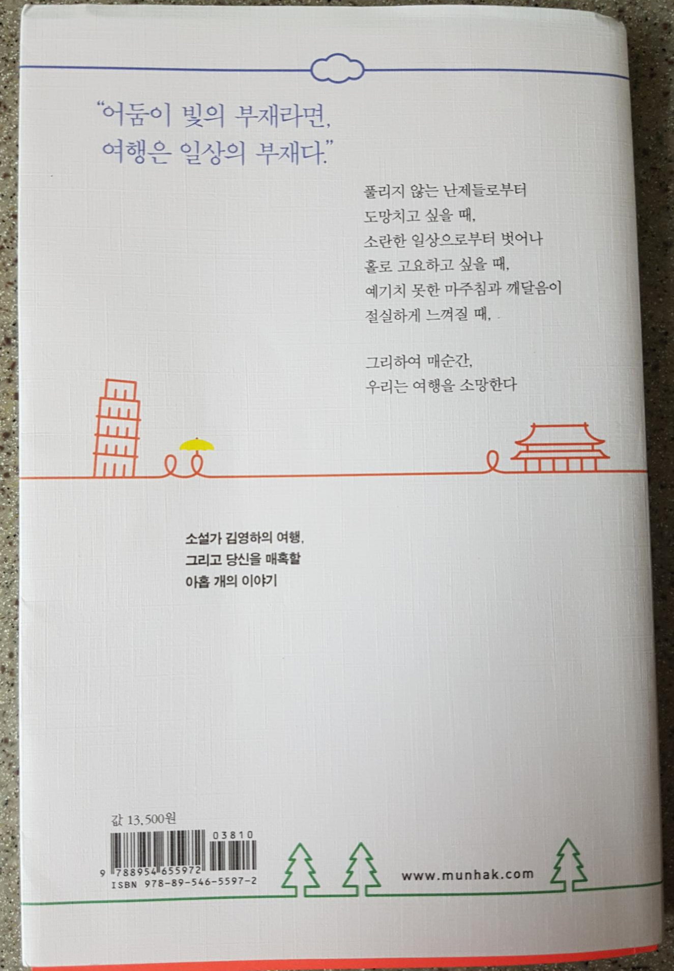 책의 마지막 부분 중 '여행은 소설과 많이 닮아있다.'는 말에 아주 큰 공감을 했다. 실제로 가끔 소설을 읽다보면 책을 펼치는 그 행위가 마치 작가가 그려놓은 세계로 들어가기 위해 문을 열어 젖히는 듯한 기분을 느껴본 적이 있기 때문이다.