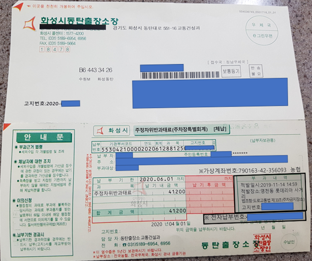 이게 뭐지 싶어서 열어보았더니 다름아닌 '뜨헉 !! 불법주차 과태료 청구서'였어요. ㅠㅠ;;