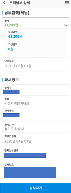개인정보를 입력하고 나서 조회를 해보면 납부해야할 모든 내역을 한 눈에 확인할 수 있습니다.