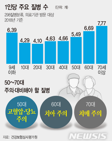 오늘 포스팅할 내용은 '한국인의 연령대별 주요 질병'입니다.