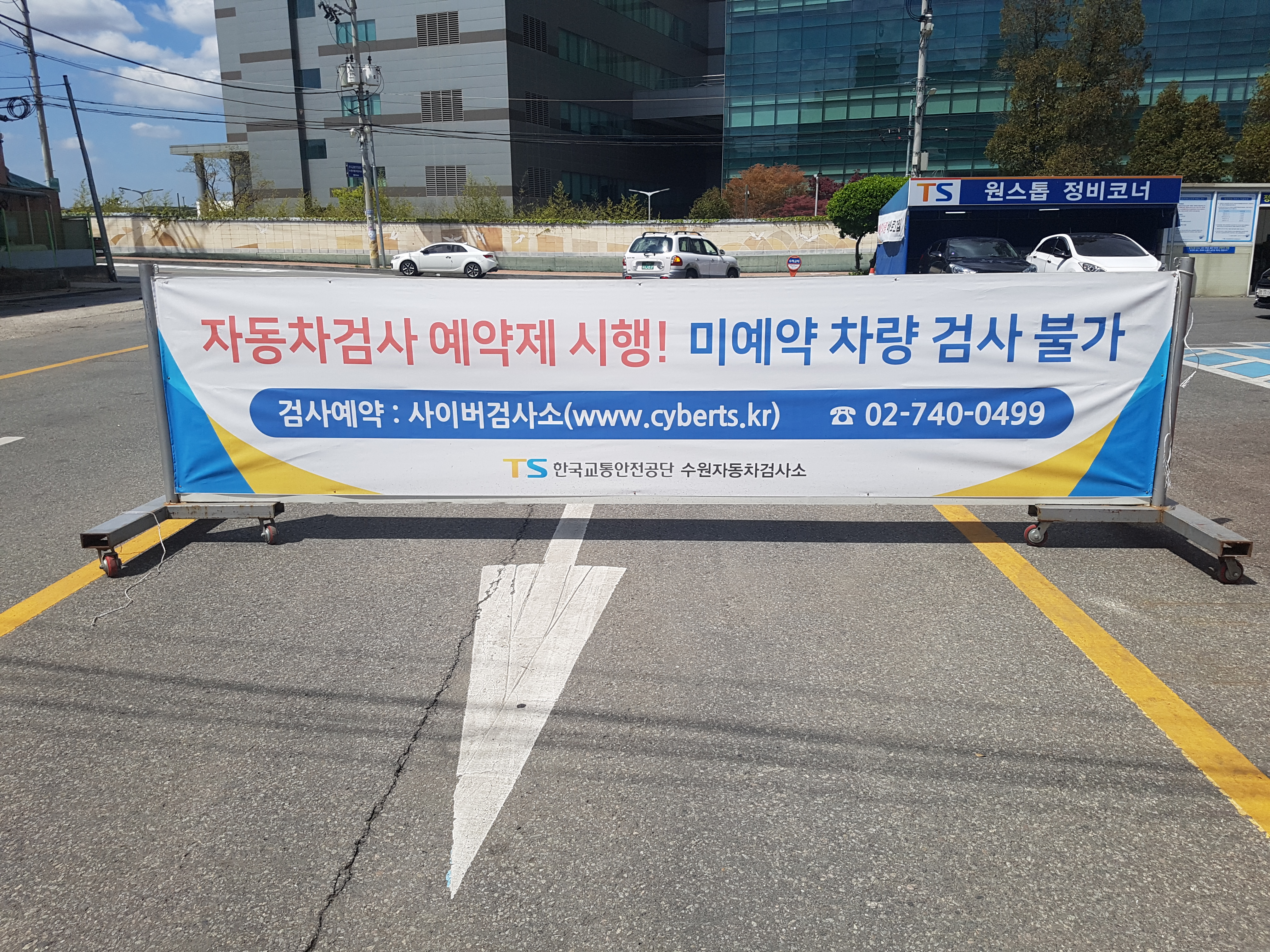 이미 예약을 하고 간 것이기 때문에 도착하면 예약차량 대기줄에 서서 본인 차량의 검사차례가 올 때까지 기다리시면 됩니다. 미예약 차량은 검사가 불가하다고 입구에 아주 크게 안내가 되어있네요!!