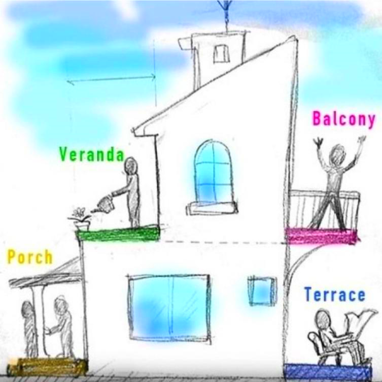 독립주택의 경우 거실의 연장으로 앞마당과 주방에 연결되는 서비스 공간으로 이해하시면 됩니다. 아파트 발코니의 경우 건축물대장에 표기가 되어있지 않은 서비스 면적으로 건물 밖에 돌출된 공간도 해당이 되며, 예전의 아파트들은 거실 앞쪽으로 발코니가 많이 보였는데 요즘 짓는 아파트를 보면 거의 확장형으로 되어있습니다.