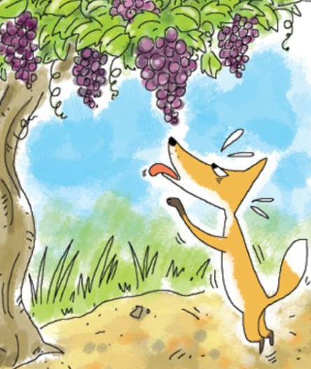 여우는 포도를 먹고 싶어서 펄쩍 뛰었다. 하지만 포도가 너무 높이 달려 있어서 여우의 발에 닿지 않았다.
