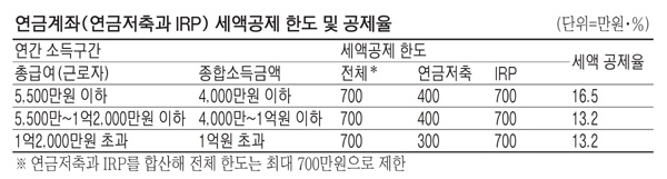 연금 상품의 세제혜택 현황 (자료 : 금융감독원)