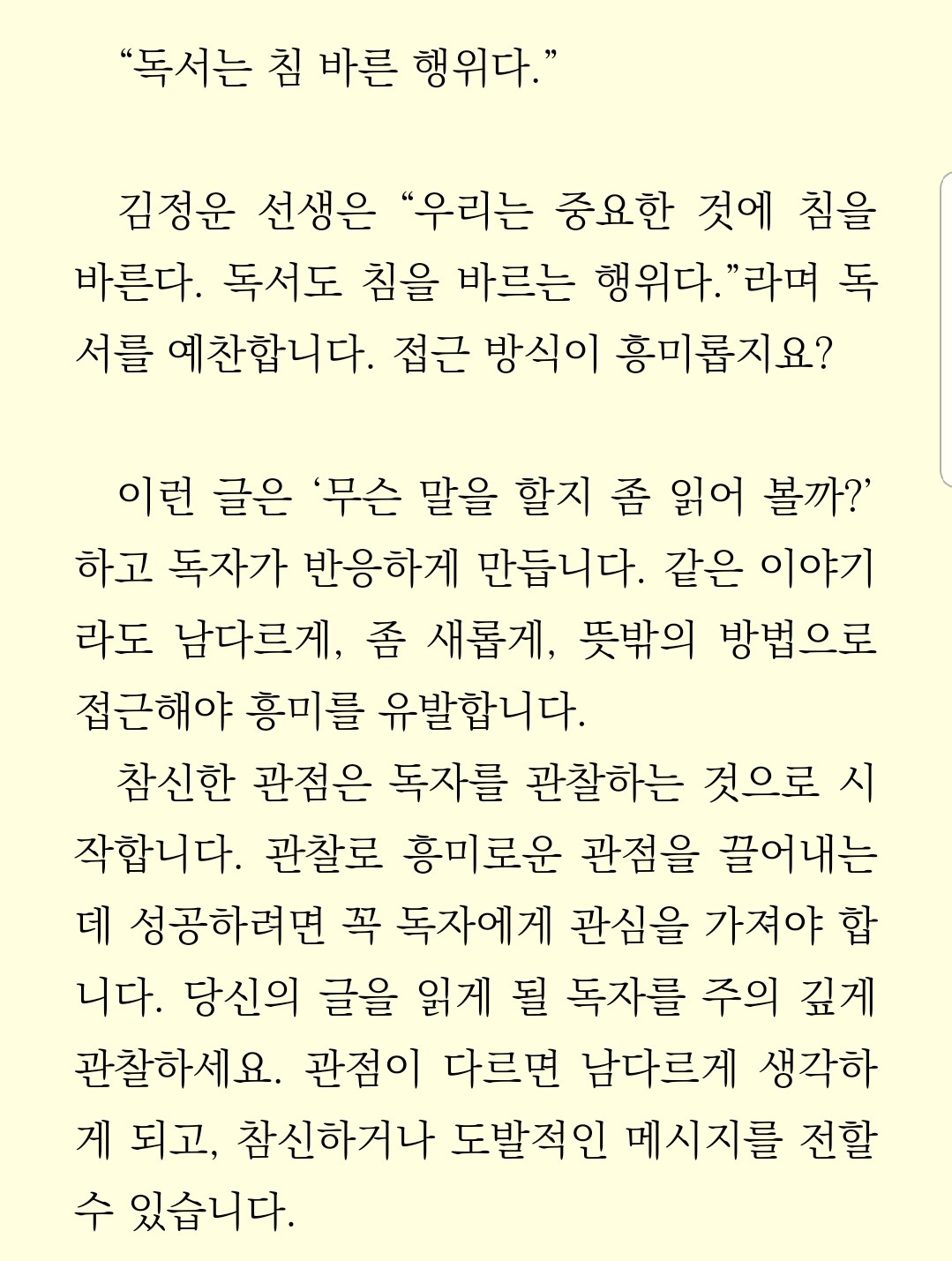 기발한 표현의 방식을 활용하여 남다르게 독자의 흥미를 유발하는 것이 글을 읽고 싶게 만드는 스킬이다.