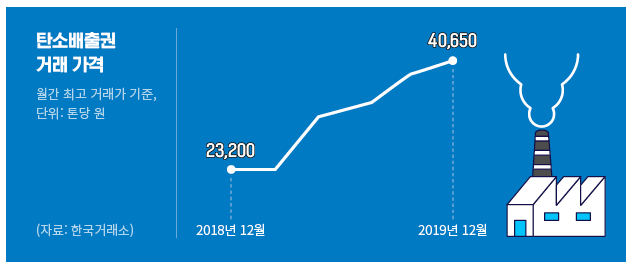 탄소배출권 거래제는 탄소배출량이 많은 기업을 대상으로 과거 배출한 온실가스를 기준으로 단계적으로 감축된 배출량을 배정받는 제도입니다. 배정된 양보다 더 많은 온실가스를 배출하려면 탄소배출권을 구매해서 이를 채우는 식으로 운영되는데요. 톤당 탄소배출권의 가격이 폭등했습니다. 톤당 1만~2만원대를 유지하던 탄소배출권의 가격이 꾸준히 오르다 지난 해 연말을 기준으로 4만원 가까이로 폭등한 것인데요. 생산량이 늘어나면 탄소배출권을 더 구매해야 하기에 탄소배출량이 많은 철강/시멘트 업계에서는 이 비용이 새로운 부담으로 떠오르고 있습니다.