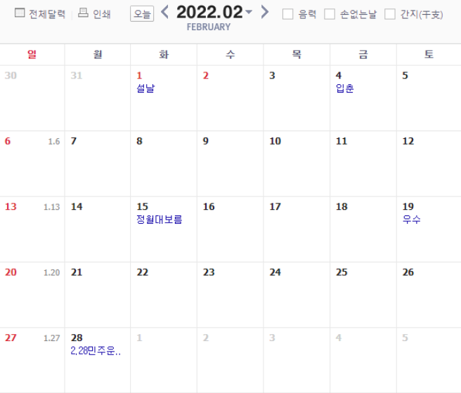 2022.01.24 - [공유하는 일상/유용한 생활 정보] - 2022년 공휴일, 대체휴일, 휴일수, 유급휴일