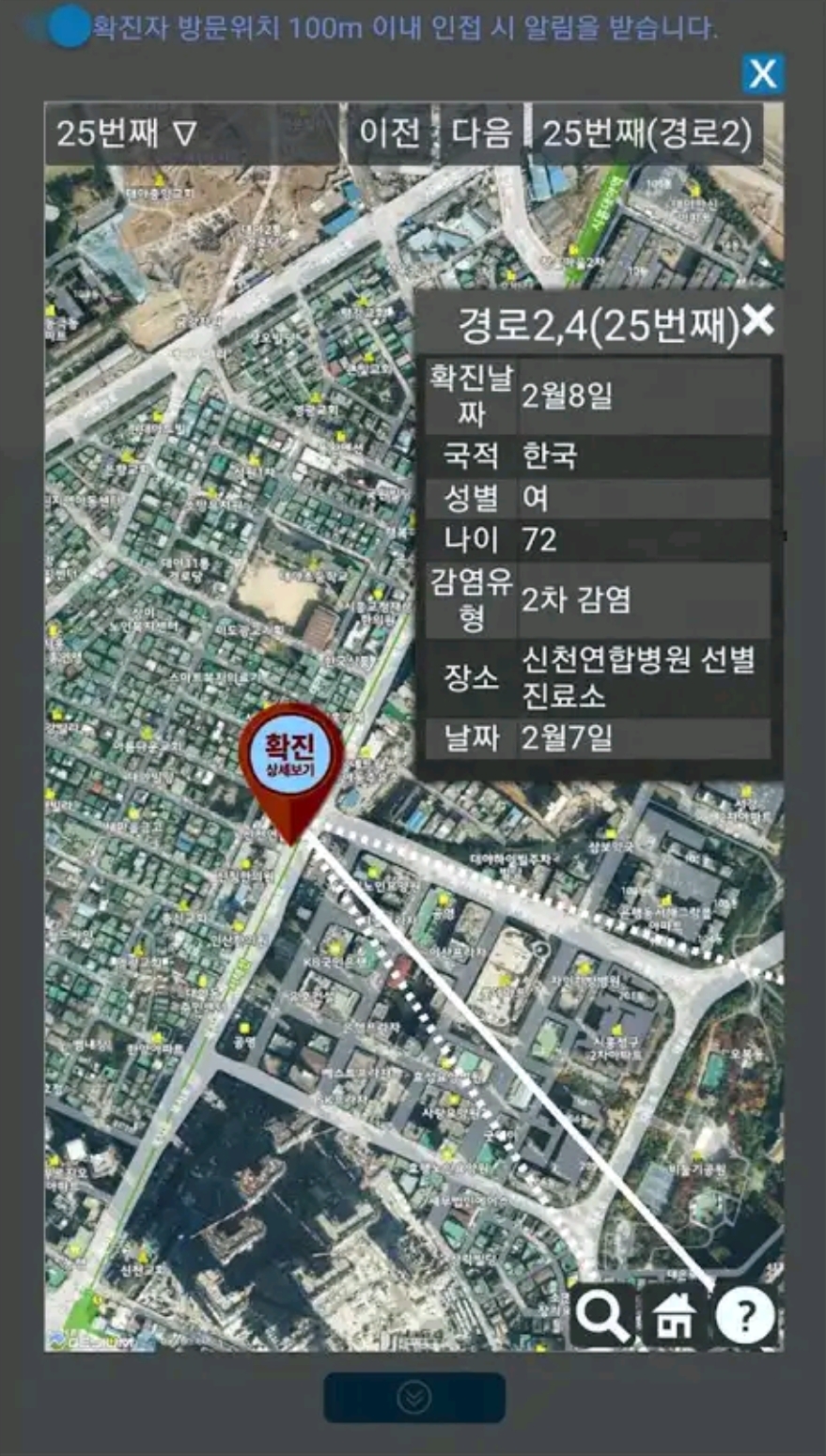 1. 확진자 방문위치 100m 이내 인접 시 푸쉬알림
