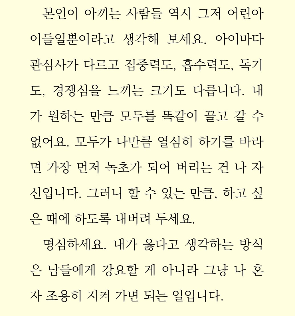 그럴수록 점점 뒤쳐지고 남과 비교하며 주눅만 들어간다.
