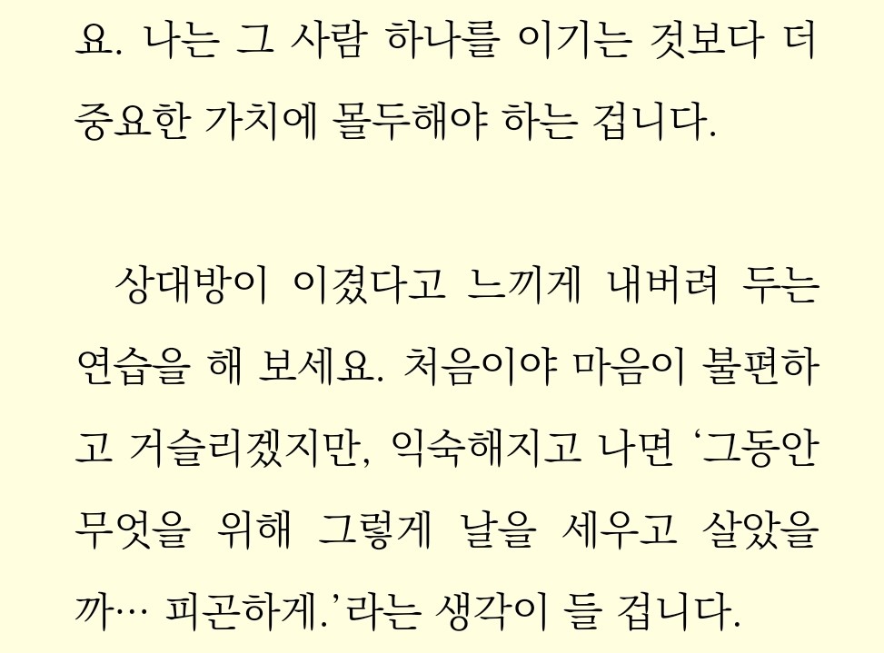 상대방의 행동 하나하나에 신경쓰고 휘둘릴 필요가 없다.
