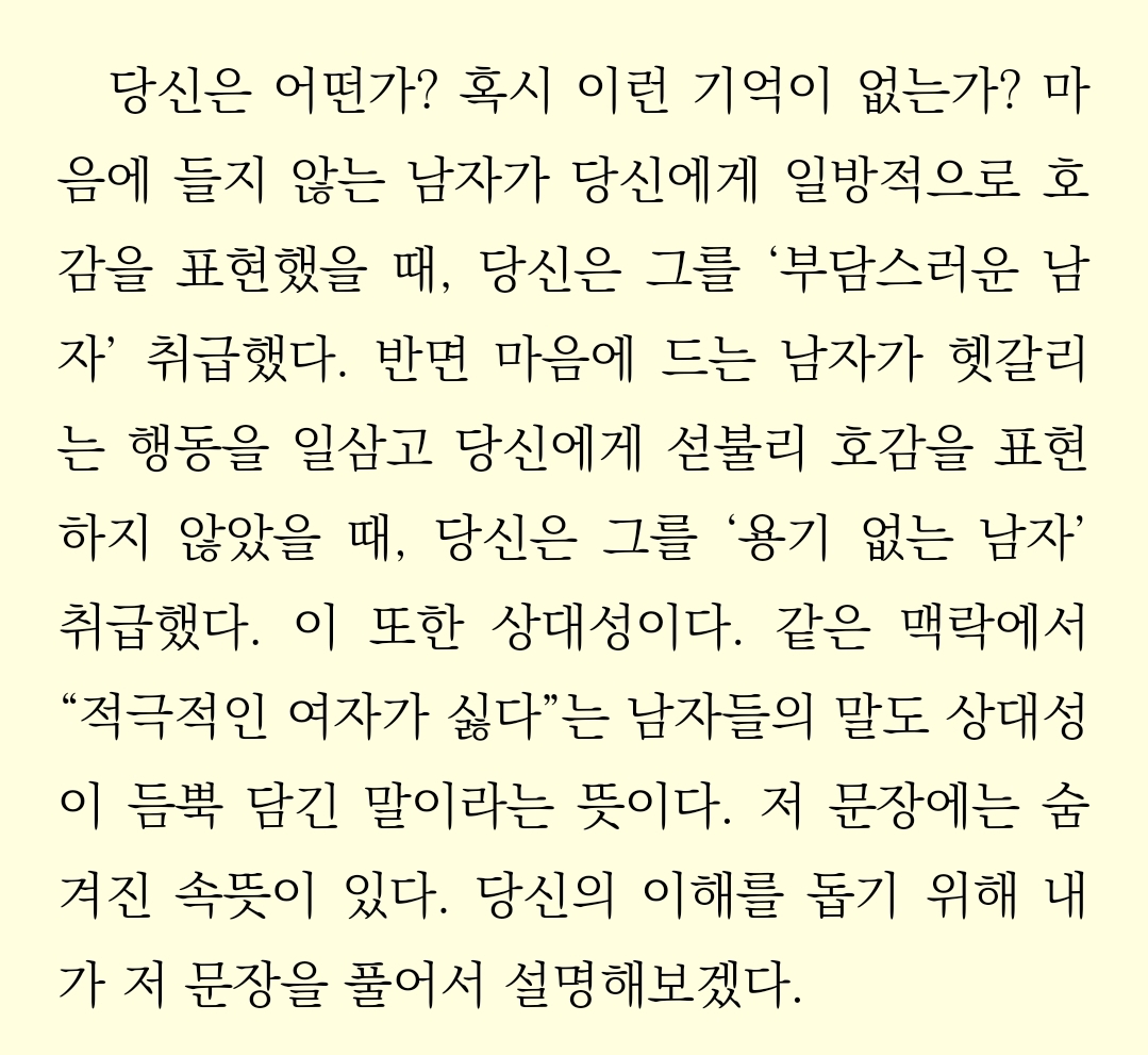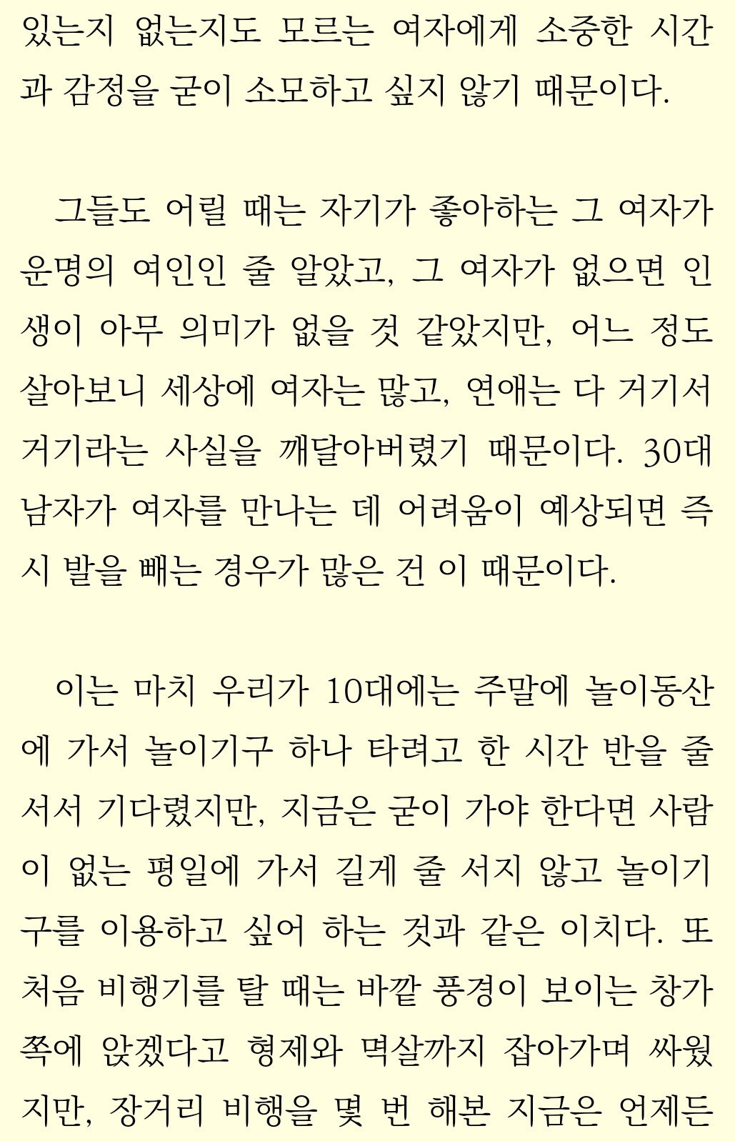 이 책은 30대 남자의 입장을 대변하며 이야기를 풀어간다.