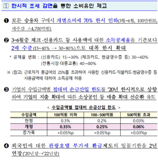 아래 내용은 2020년 2월 28일 기획 재정부에서 발표한 '코로나19 파급영향 최소화와 조기극복을 위한 민생,경제 종합대책' 내용입니다.