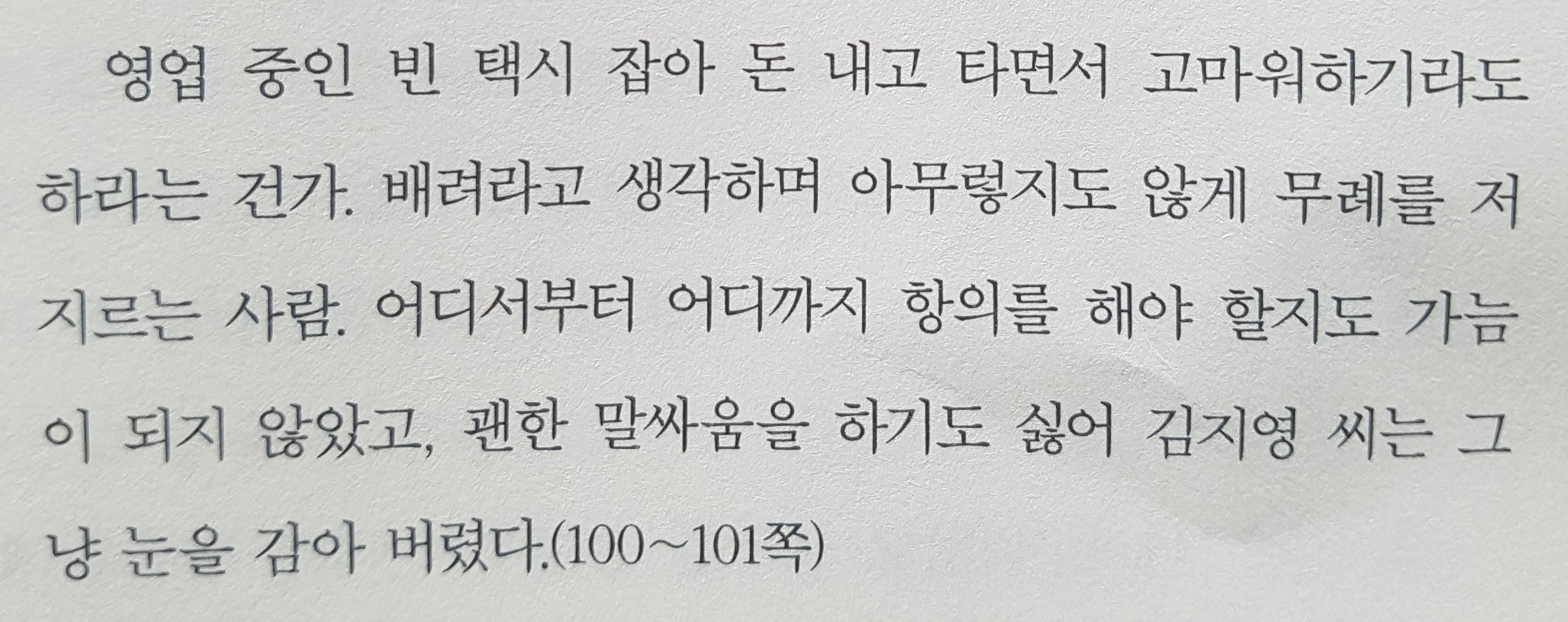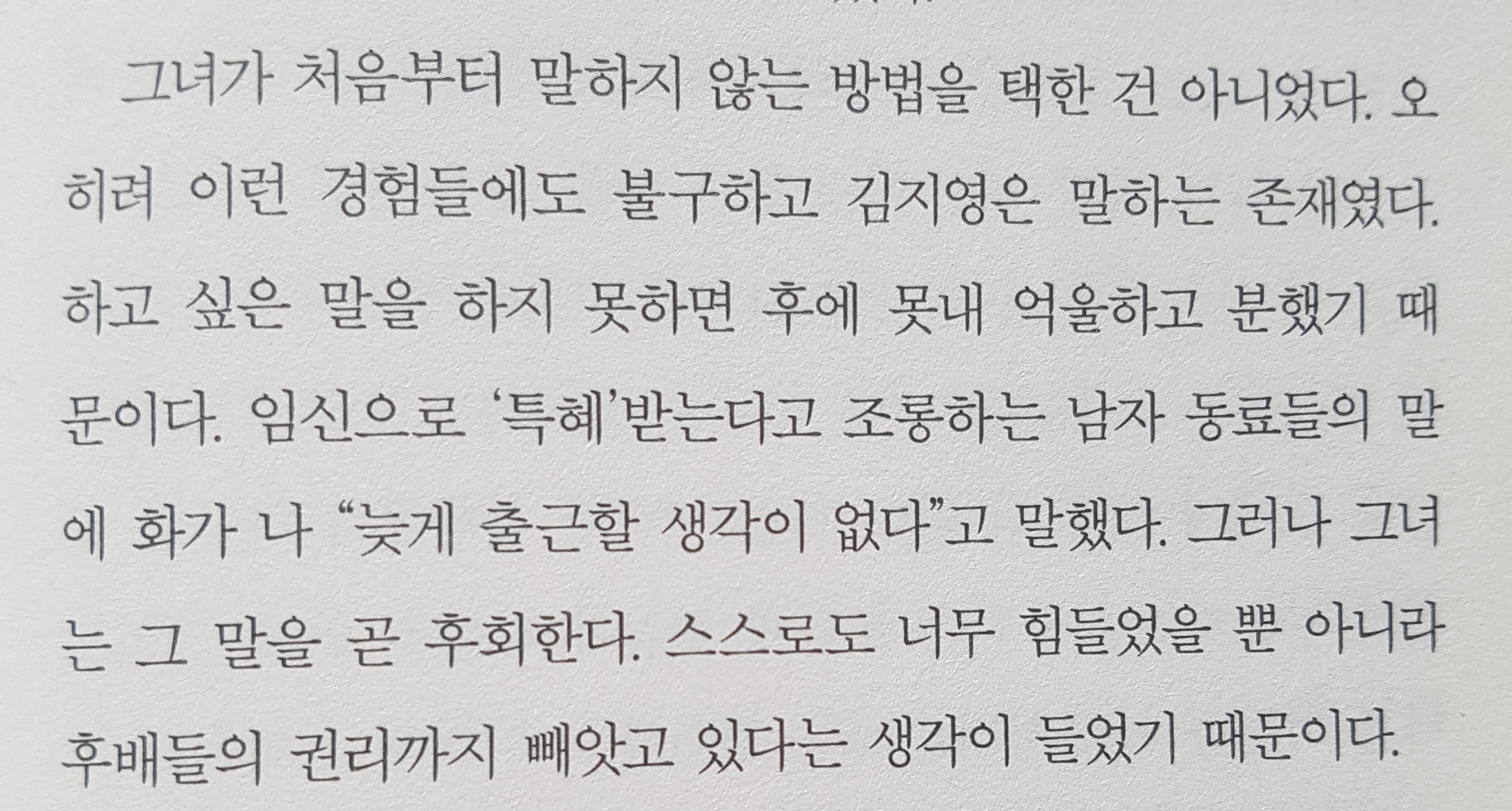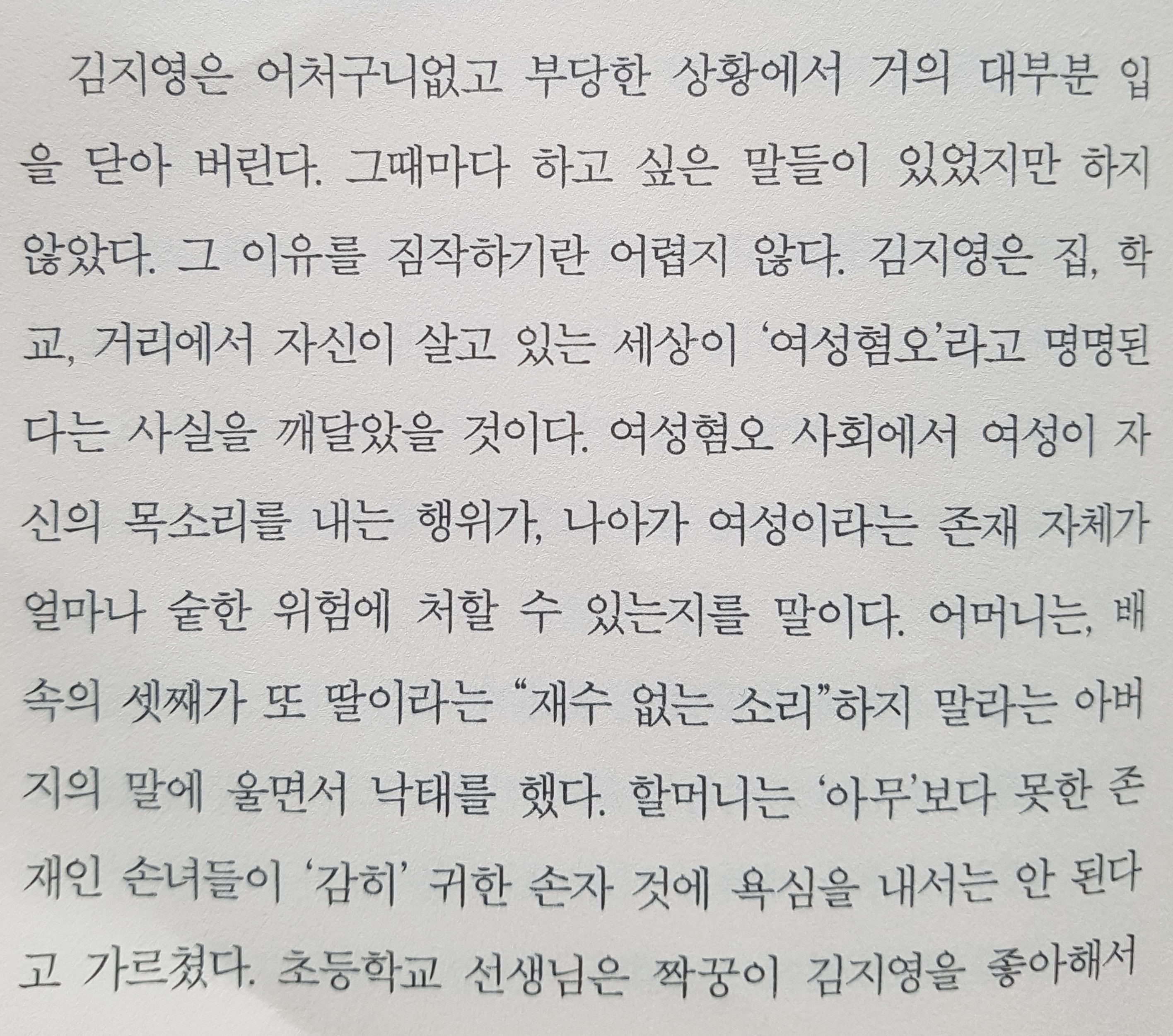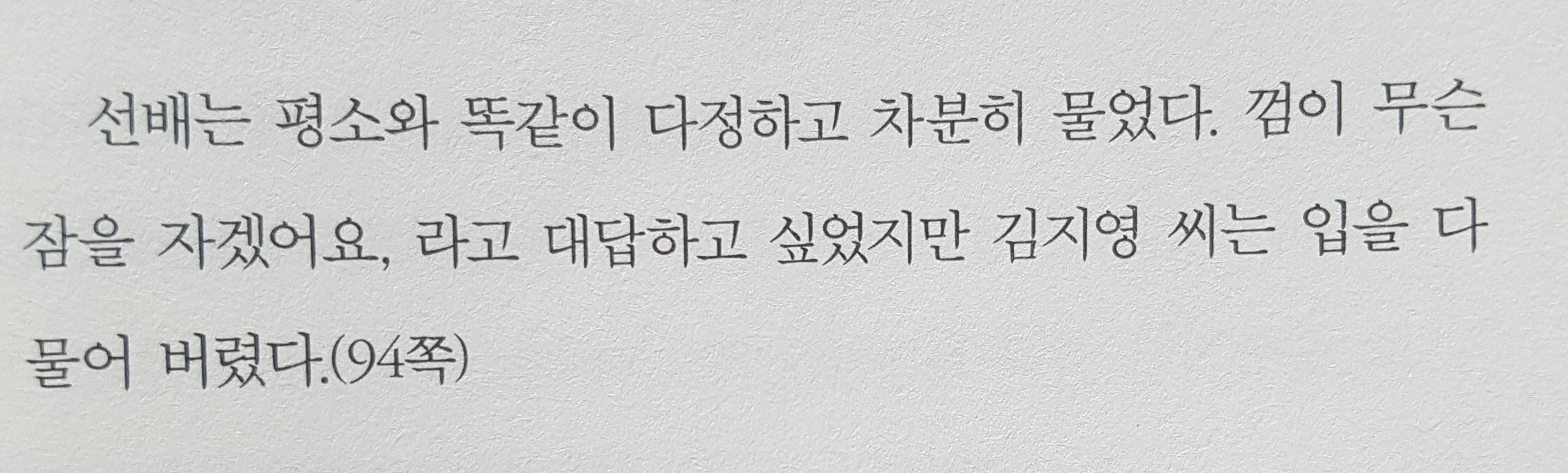김지영은 늘 입을 꾹 다물어버리곤 한다.