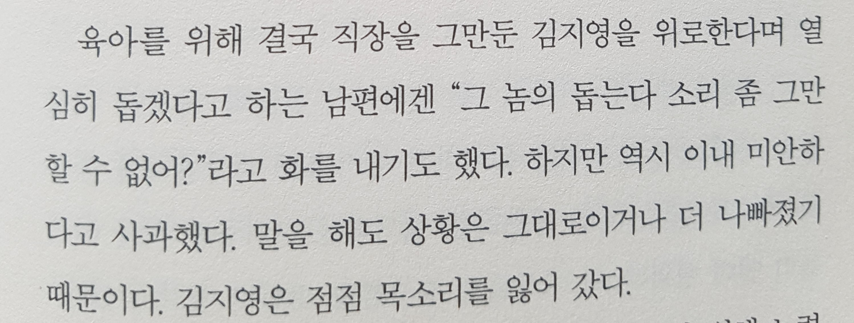 주인공 82년생 김지영씨는 평소와 다름없이 지내다가