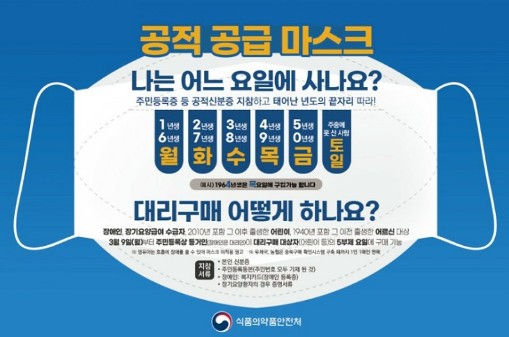 정부에서는 출생연도에 따라 요일별로 마스크 구매를 제한하는 방침을 내놓았습니다.