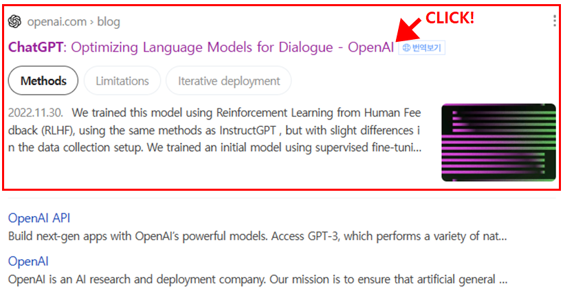 검색창에 '챗GPT'라고 치면 가장 상단에 위 빨간 박스와 같은 사이트가 보이실 겁니다.
