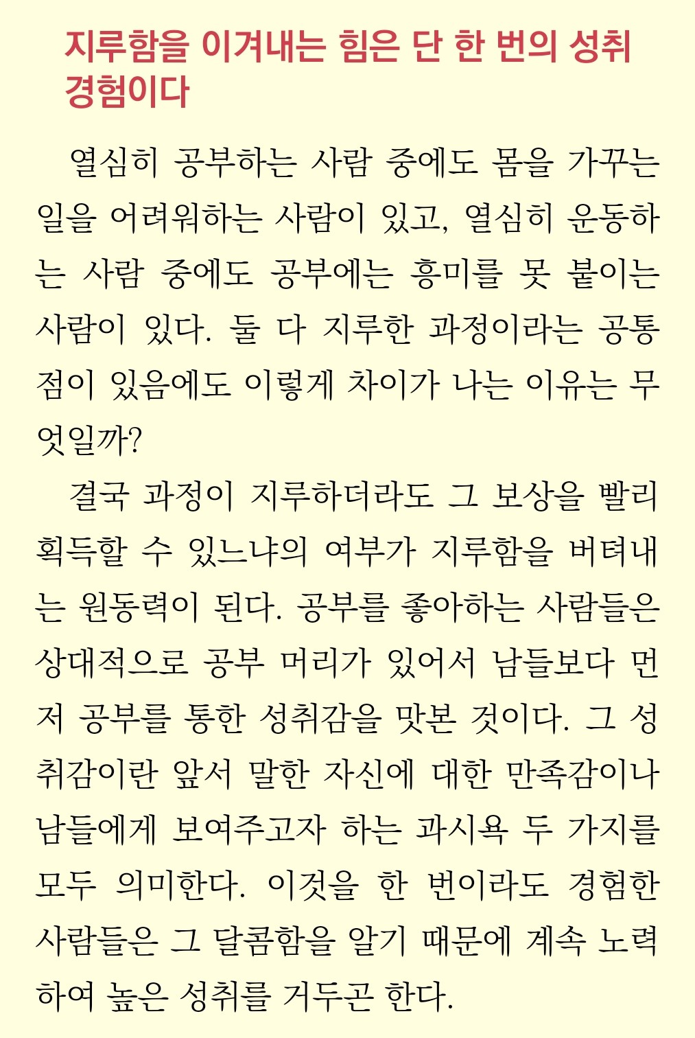 사실 이는 공부 자체의 문제가 아니라 공부를 위해 지루한 방식을 택했기 때문에 초래된 결과이다.