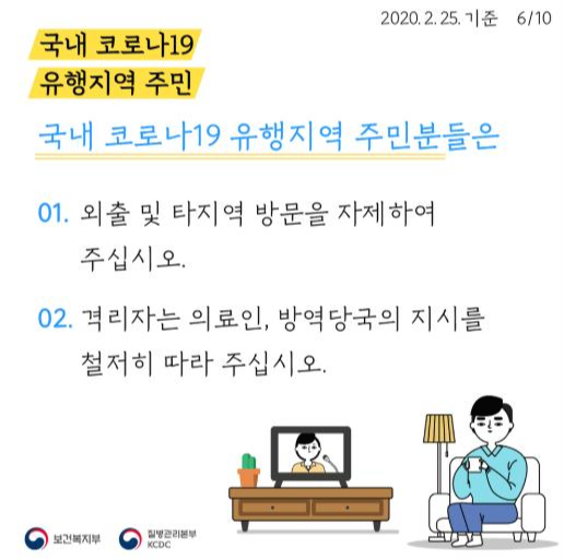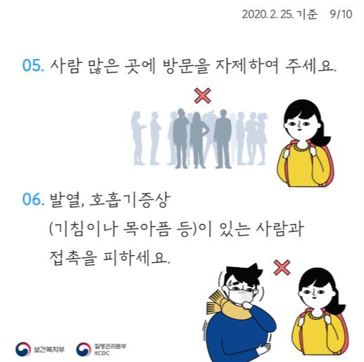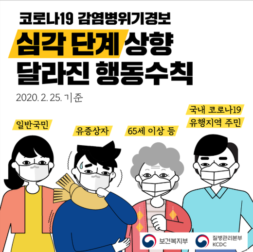 위기경보의 수위가 '심각'단계로 상향되며 달라진 행동수칙은 아래와 같습니다.