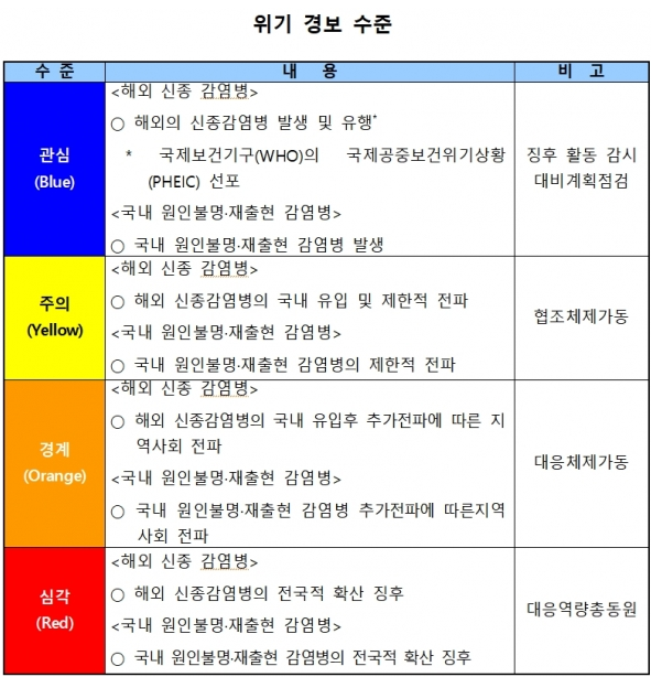 계는 사람들 사이에서 감염이 증가된 상태, 4단계는 사람들 간 감염이 급속히 확산되면서 세계적 유행병이
