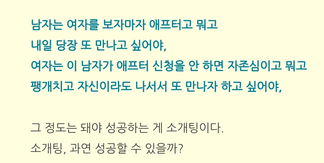 서른 즈음이 되면서 생애 첫 소개팅을 경험해보곤 한다.